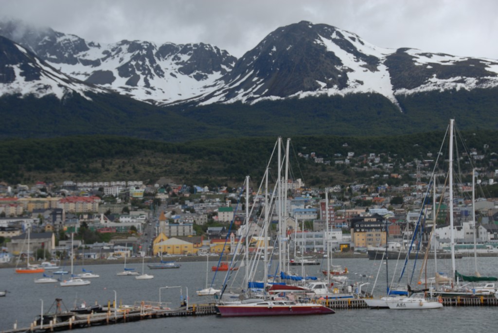 Als erstes mussten wir uns mit Kleidern eindecken. Alle Sportgeschäfte klapperten wir ab, und deren gibt es in der Stadt genug. Wanderschuhe, Unterwäsche, Socken, Hosen, Jacken, Handschuhe, Mützen alles mussten wir kaufen. Die Temperaturen waren sehr kühl und ein eisiger Wind wehte uns um die Ohren. Der Schnee reichte weit über die Bergflanken herunter. Nicht nur im Laufe eines Tages unterscheiden sich die Temperaturen in Ushuaia sehr stark, auch im Laufe des Jahres gibt es sehr unterschiedliche Werte. Im Normalfall liegen die Temperaturen im Sommer in den Monaten von Dezember bis Februar zwischen 5 und 20 Grad, zwischen Juni und August im Winter etwa bei – 20 Grad und 8 Grad plus.