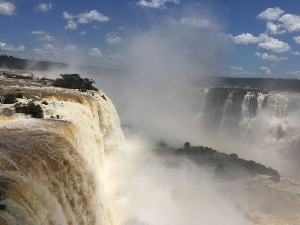 Auf einer Breite von 2,7 Kilometern stürzen 275 Wasserfälle bis zu 82 Meter in die Tiefe. An einem normalen Tag rauschen hier pro Sekunde unglaubliche 1,5 Millionen Liter Wasser vorbei. Wenn es viel geregnet hat, was bei uns vorher der Fall war, bestaunten wir 7 Millionen Liter Wasser pro Sekunde.