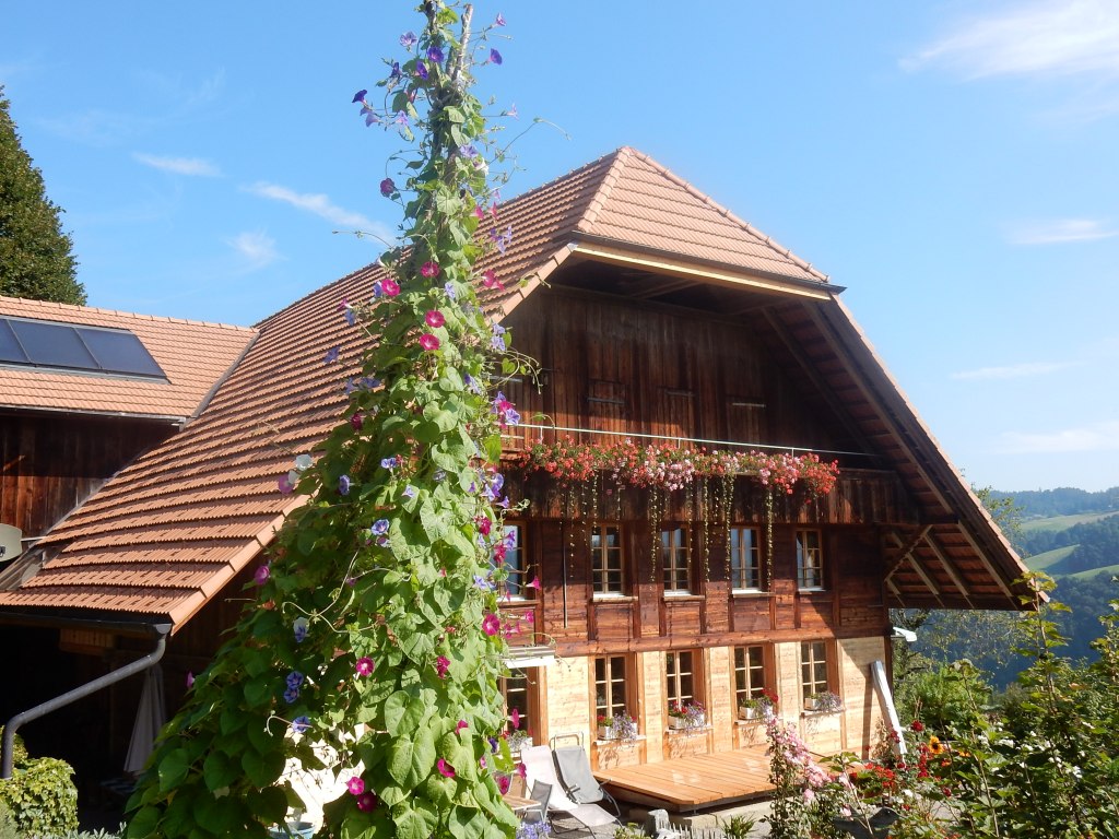 Der Aufenthalt bei Familie Haldimann war also für ihn nichts Ungewohntes oder Unbekanntes. Kurz gesagt es wurde für zwei Jahre eine Erfolgsgeschichte! Das Ehepaar Käthi und Paul Haldimann verstanden es, mit viel Feingefühl und viel Geduld Peter zu betreuen und in den Alltag mit einzubeziehen. Der Hof ist ganz abgelegen, mit wunderschöner Aussicht, ruhig, überschaubar und mit einigen Tieren. Hühner, Esel, Alpakas, Katzen und die Retriever Hündin Sina, wohnten auch auf dem Hof. Zudem führten Käthi und Paul Haldimann ein Bed und Breakfast und es waren oft Gäste auf dem Hof. https://bnb.ch/de/bnb/2043