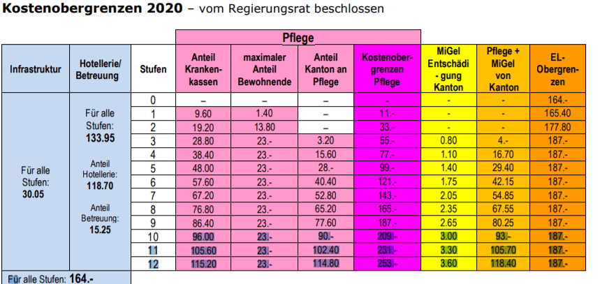 Ein Aufenthaltstag von Peter kostet gesamt 362.- Die Hotellerie und ein Pflegeanteil werden von uns direkt bezahlt. (187.-) Die Krankenkasse bezahlt ihren Pflegeanteil und der dritte Teil wird vom Kanton übernommen.