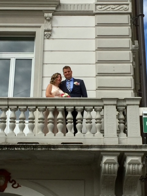 Der Tag rückte heran und wir beschlossen, mit meinen Eltern, beide schon weit über 80, bereits einen Tag früher ins Tessin zu fahren. Ich suchte eine kleine, hübsche Pension und wir bezogen unsere Zimmer. Peter kam natürlich überall hin mit, machte so gut wie er es vermochte mit. Aber, der Anlass, warum wir jetzt konkret im Tessin waren, wurde ihm nicht bewusst. Am 14. September dann, trafen wir das Brautpaar, die Trauzeugen und die eingeladenen Gäste. Plötzlich hupte es und ein altes Postauto fuhr vor. Damit fuhren wir auf die Piazza Grande, direkt in Locarno, vor das Standesamt. Wir alle nahmen an der Trauung in diesem wunderschönen, alten Palazzo teil. Es war für uns sehr berührend, feierlich und schön. Ach Peter, wenn du doch das alles noch so richtig wahrnehmen könntest!