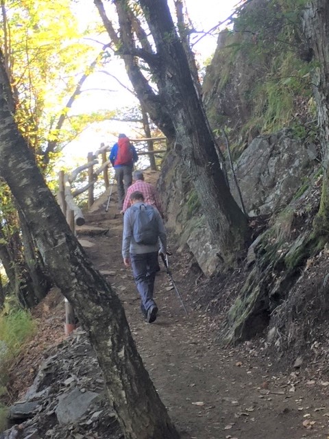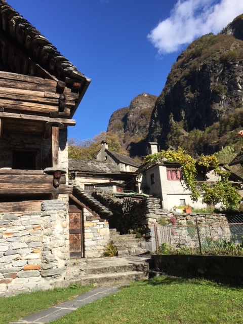 Wenn die Rast vorbei ist geht’s weiter aufwärts bis zum Wasserfall in Foroglio. Wir steigen hoch bis zum Scheitel des Wasserfalls und bewundern die Aussicht und hören das Tosen des Wassers. Anschliessend im Grotto bestellen wir ein Glas Merlot und geniessen einen Pilzrisotto. Die Schönheit des Wasserfalls würde uns verzaubern und wir würden staunen ob dem Farbenspiel, wenn die Sonne in den Sprühnebel fällt. Die wunderbaren alten Häuser in Foroglio würden ein tolles Fotosujet geben und vielleicht würden wir auch einen handgefertigten Artikel in einem kleinen Laden erwerben. Zufrieden und müde würden wir dann ins Poschi steigen und wieder zurück nach Locarno fahren. Peter deine Wanderlust fehlt…