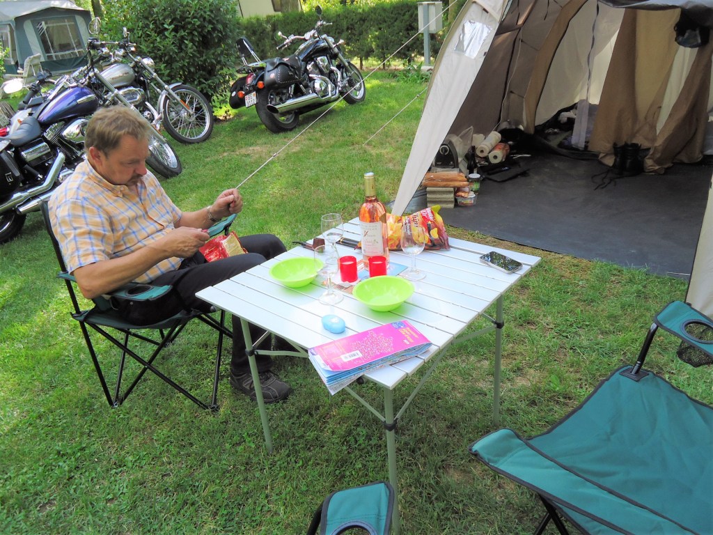 Wenn wir drei uns entschlossen haben unsere Motorräder zu packen, um z.B. in Richtung Provence zu starten, dann war das immer sehr lässig. Wir haben alle unsere Motorräder bepackt, ähnlich wie die bekannten „Beduinen“. So gehörte zu unserer Standardausrüstung natürlich ein großes Zelt, ein Tisch, Stühle, Kabelrolle, Geschirr, Schlafsäcke, Schlafmatten und ganz wichtig, die Kaffee-Maschine. Peter und Regina sind Kaffee-Trinker und ohne entsprechende Maschine in den Urlaub zu fahren, war ein no go.